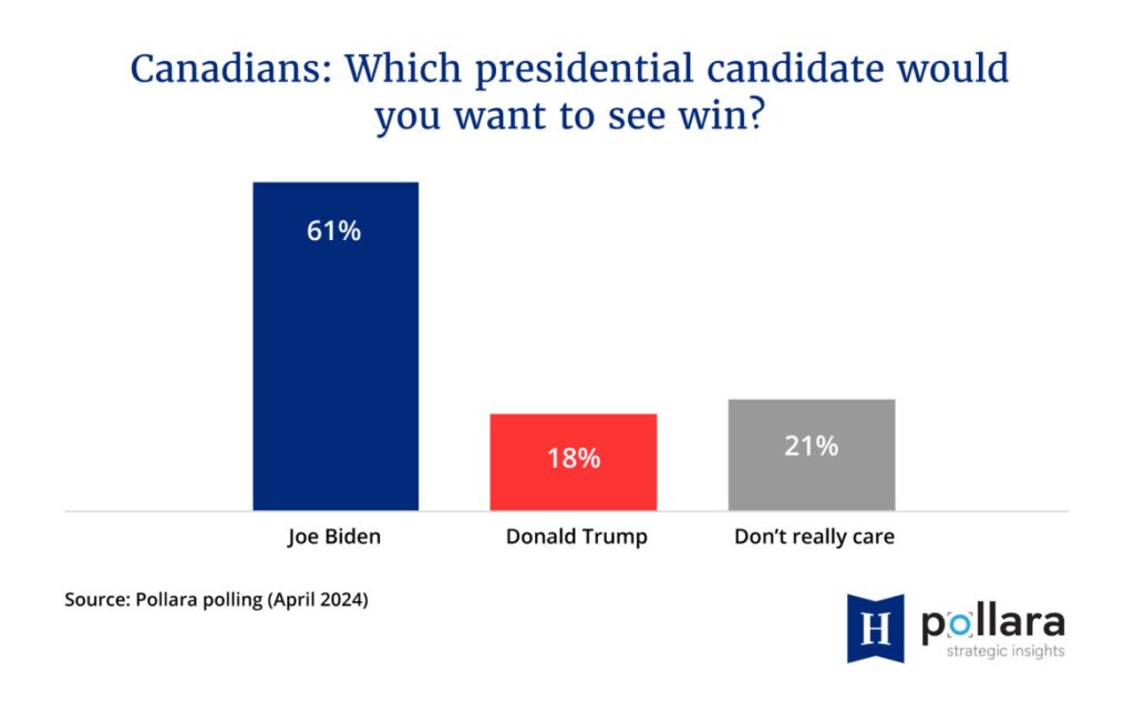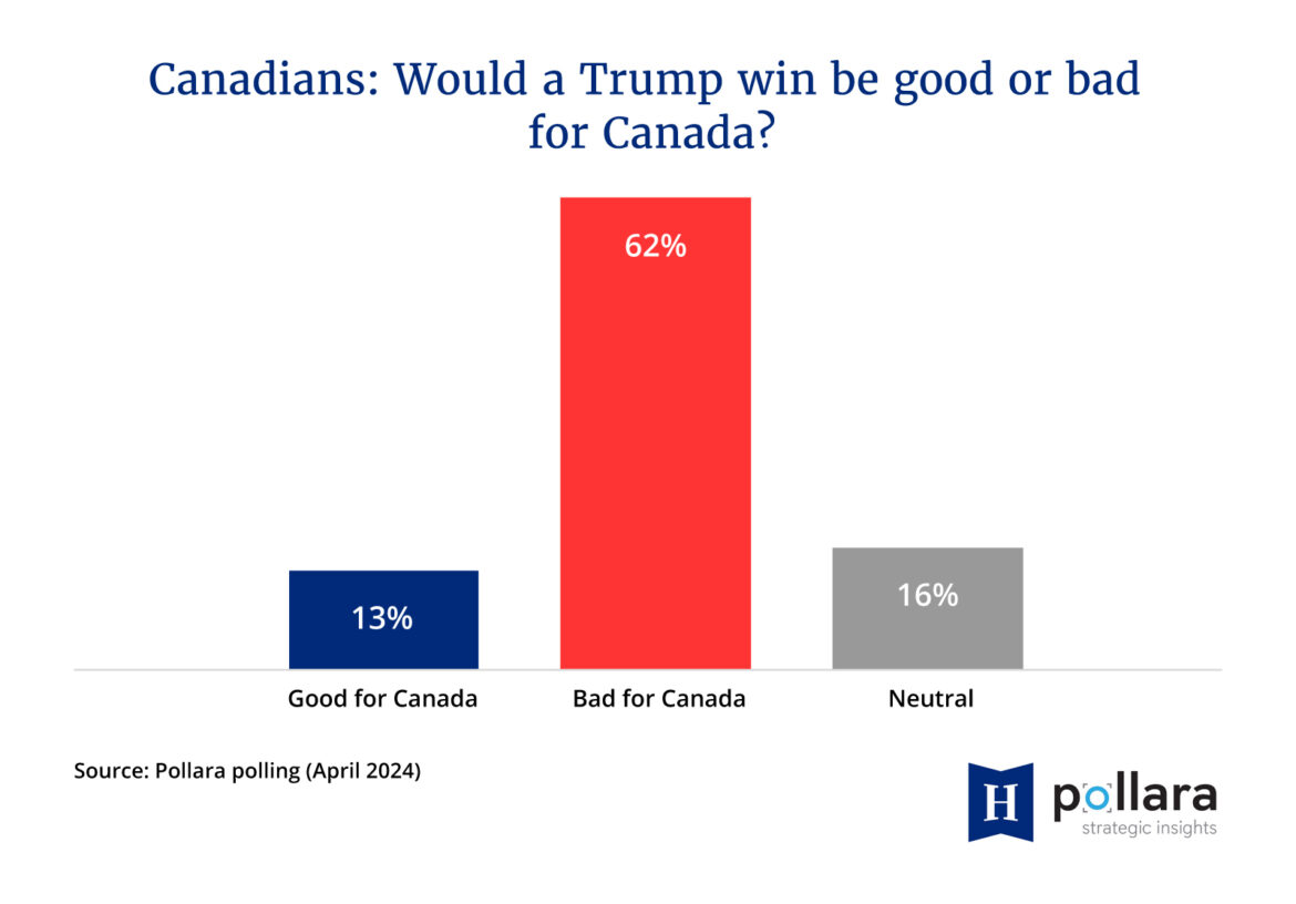 April 5, 2024 – In the lead-up to the November 2024 U.S. presidential election, Pollara Strategic Insights is regularly polling Canadians about their views and feelings about the race. We’ll be sharing some select findings from these surveys on our website as well as exclusive commentary at The Hub.